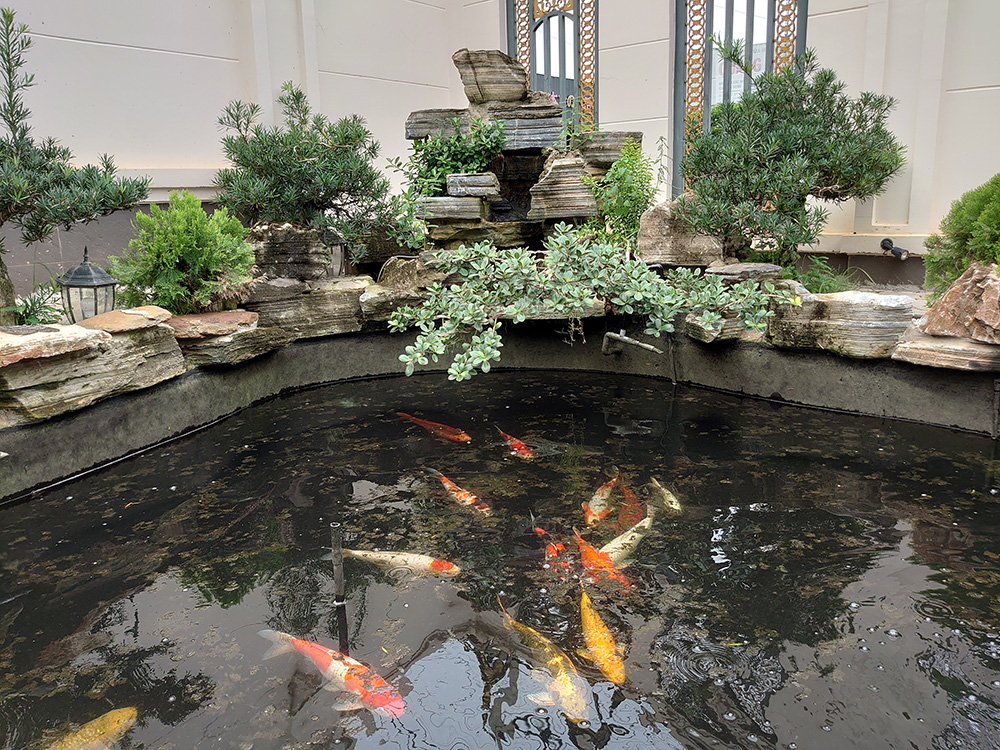 Hiện trạng hồ Koi ban đầu: Thể tích bể hồ và bể lọc 6m3 hệ thống lọc truyền thống bị lỗi về kỹ thuật lắp đặt đường ống hút đáy và hút mặt